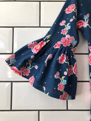 Onze variatie op patroon Lindy. Download dan hier gratis het patroon-onderdeel voor de ruffle die aan de mouw komt en volg de werkwijze.